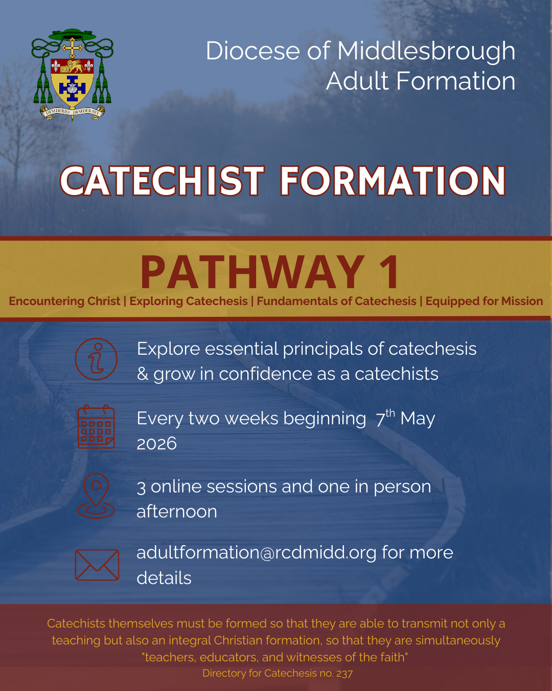 Forming Catholics in the Diocese of Middlesbrough into confident, missionary disciples, grounded in sacramental life, growing in faith, and actively living the Gospel in their families, workplaces, and communities.