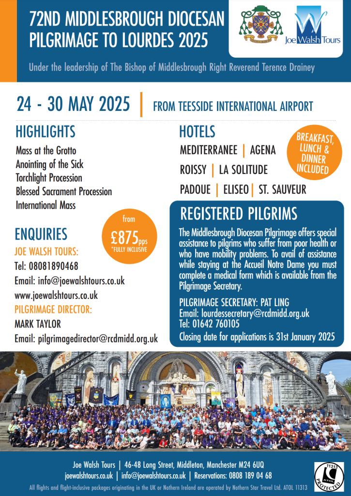 Our Lourdes committee has announced prices for the 73rd Diocese of Middlesbrough pilgrimage to Lourdes.Prices...