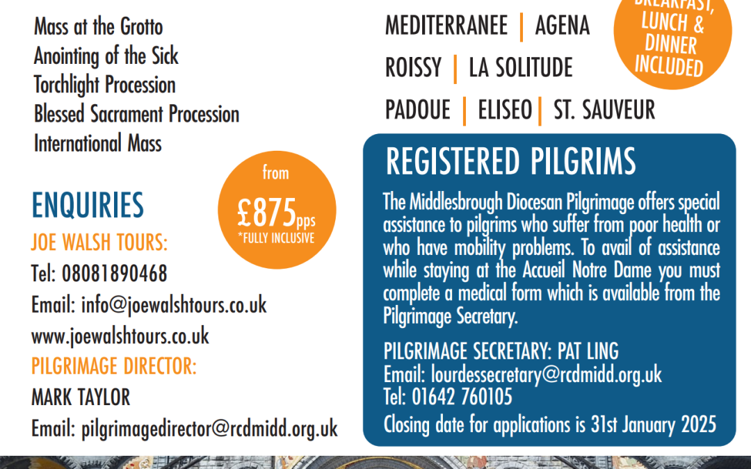 Here you will find a comprehensive list of policies and procedures ahead of our 2025 Pilgrimage to Lourdes, from Saturday May 24 to Friday May 30 2025. Click on the link to download each document. Policies Hoist PolicyDownload Manual Handling PolicyDownload...